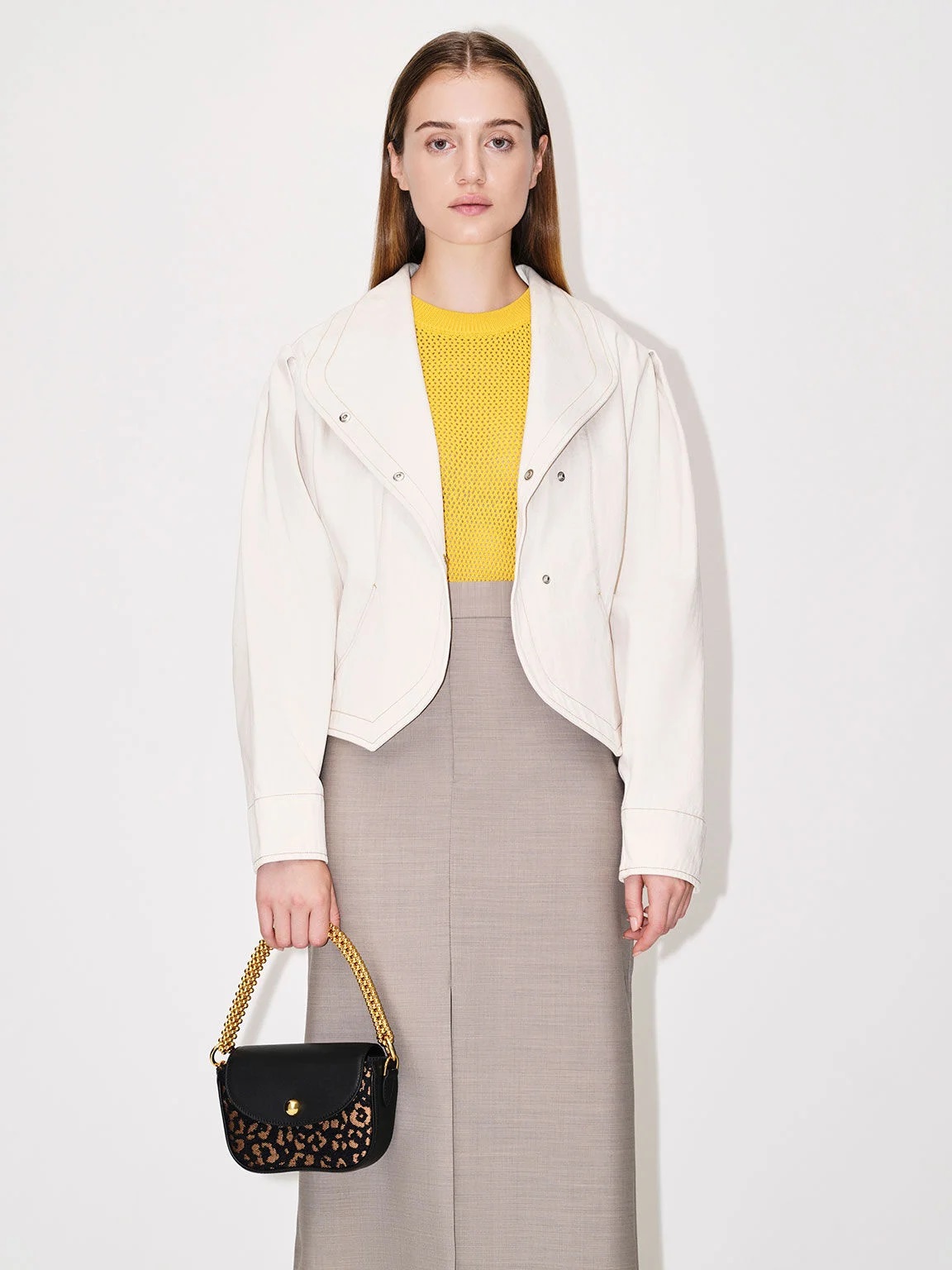 It is time to channel your wild side and make a bold style statement with this trophy piece. The artful curved silhouette complements the eye-catching beaded handle, while the striking leopard print generates visual interest. Perfectly sized to fit your most-used essentials such as lipstick, keys and cards, let it be your go-to companion on date nights and after-dark parties.