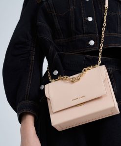 Front Flap Chain Handle Crossbody Bag – Light Pink